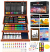 【Complete ALL-IN-ONE Deluxe Wooden Art Box】192-pack Deluxe Art Set includes a wide range of art supplies: 60 crayons, 24 colored pencils, 24 oil pastels, 24 watercolors, 24 acrylic paints, 11 sandpapers, 8 brushes, 8-well palettes, 3 A4 canvases, 1 color wheel, 1 sponge, 1 color palette, 1 HB pencil, 1 2B pencil, 1 eraser, 30 sheets sketchbook, 20 sheets acrylic pad, 20 sheets drawing pad, 1 sharpener, 1 wooden case, 1 Gift box, perfect art kit for beginners and artists of all levels.
